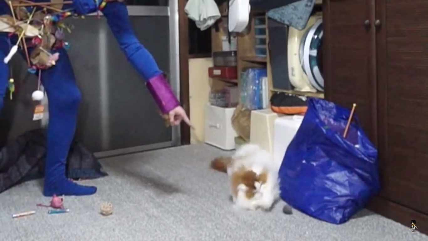 It begins with Mahoto explaining that his cats “aren’t interested in him” so he is going to see if he can change that by covering himself in a massive amount of cat toys. So he puts on the cat toys and after that his desperate cry for attention begins.