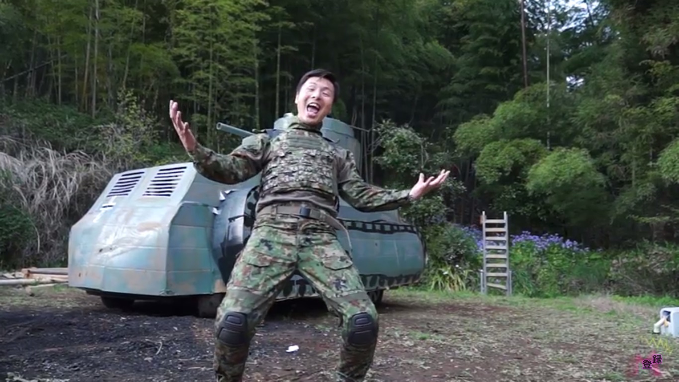 The popular Japanese YouTuber Megwin has released a video in which he uses cardboard, tape and paint to turn a car into a functional full-scale tank.