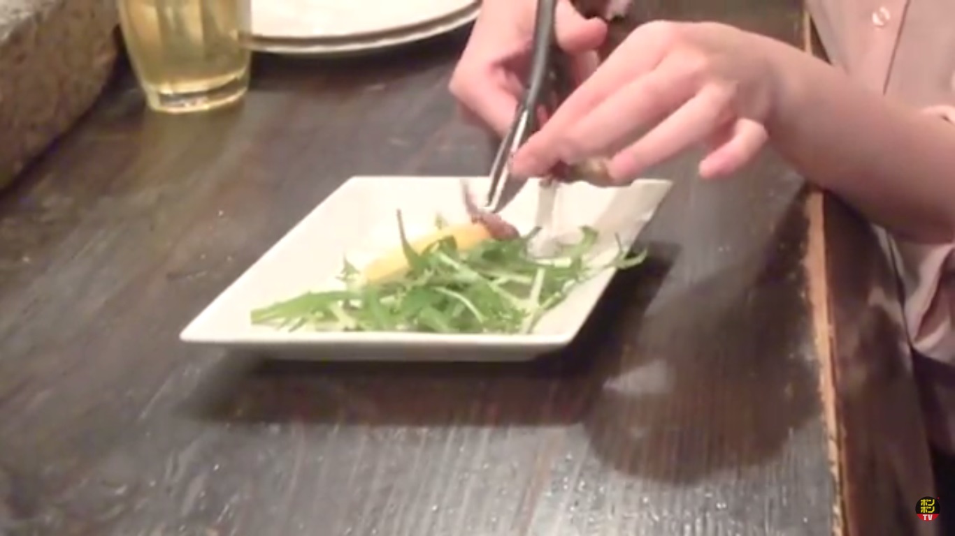 In the video below, Ricchan, who you’ll recognize as the very enthusiastic female host and Yocchi, the far less enthusiastic male host, can be seen eating four of Chinjūya’s unique dishes. These are, deep fried axolotl (a type of salamander), deep fried cockroaches, cricket and mealworm pudding, and kangaroo prepared in garlic.