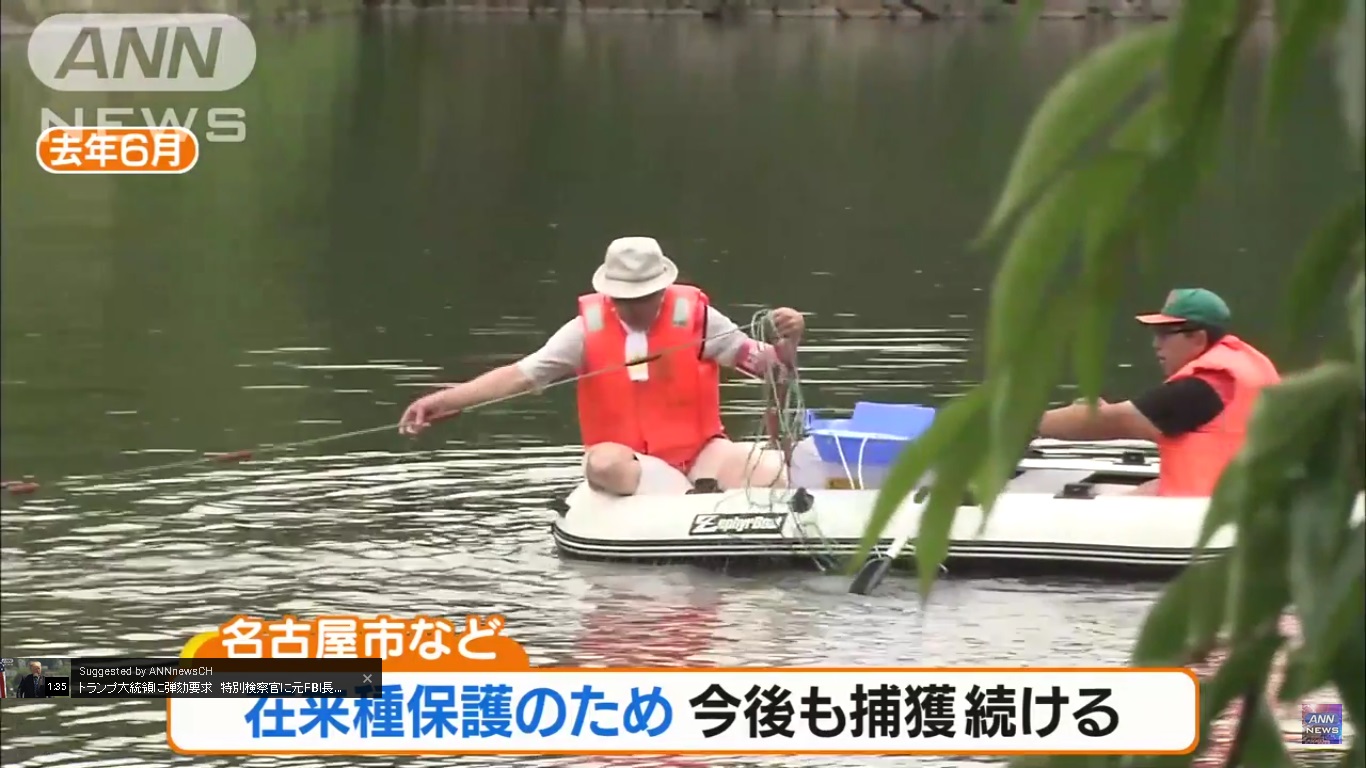 Following numerous eyewitness reports, city employees in Nagoya, Aichi Prefecture, captured an alligator gar that was living in the outer moat of Nagoya Castle.
