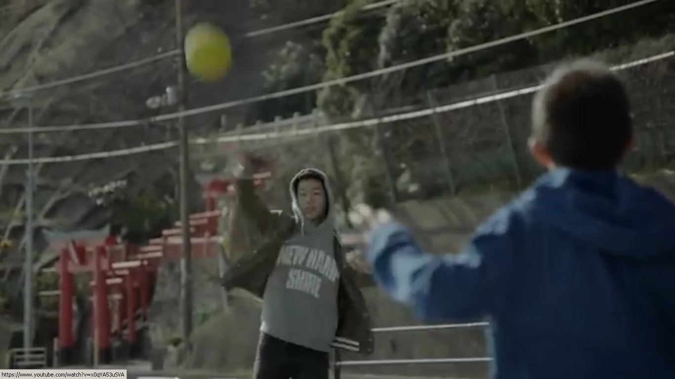 The video begins with a couple of English speaking boys throwing a ball around. However, one of the boys miscalculates and ends up throwing their ball into the nearby waters of the Kanmon Straits. The boys rush over to look at their ball, knowing that they’ll never be able to get it back. However, they notice something under the water and that something ends up being the giant sea monster Kaisendon.
