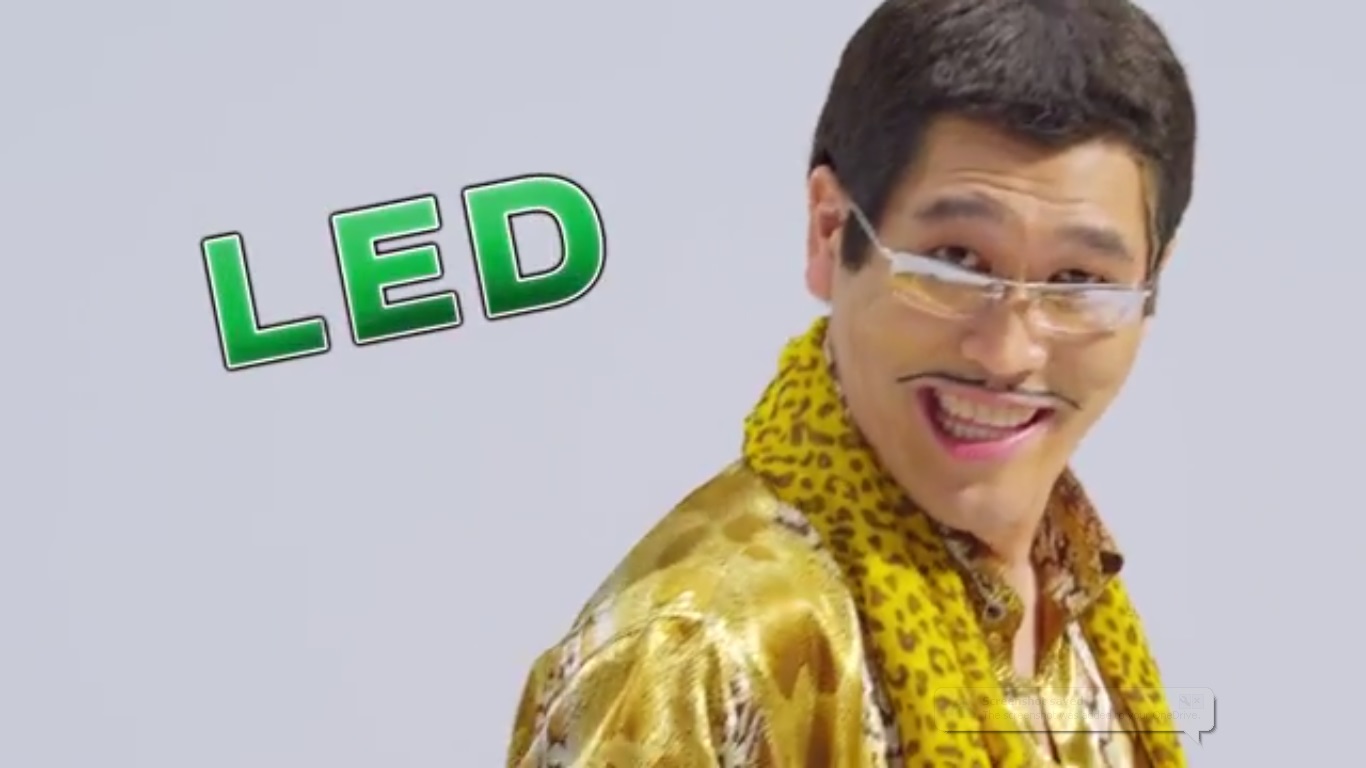 As part of this campaign people are able to go to participating home electronics stores and get one free LED bulb for every two incandescent bulbs they trade in. In other words, if you have a light bulb and you have another light bulb and you (figuratively) put them together you get an LED light bulb and it is this which in part inspired the city of Tokyo to approach Pikotaro about doing a parody video of his famous song.