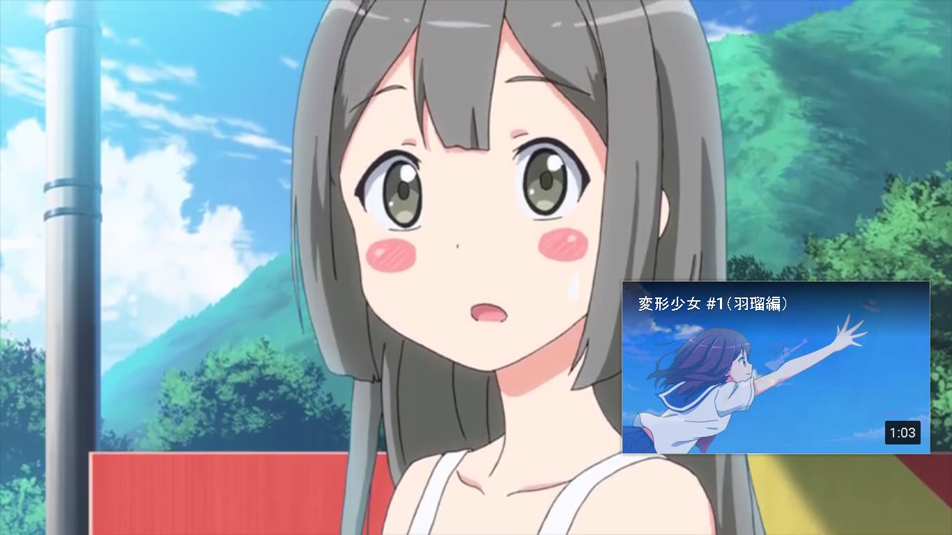 Interestingly enough, this innocent bystander that witnesses Rin turn into a car seems to be the same girl that got her hat stolen by Haru after she transforms into a fighter jet in the first Henkei Shojo video, which means that if these cleptomaniac transforming girls ever get put on trial for theft, this random girl might end up being a key witness for the prosecution.